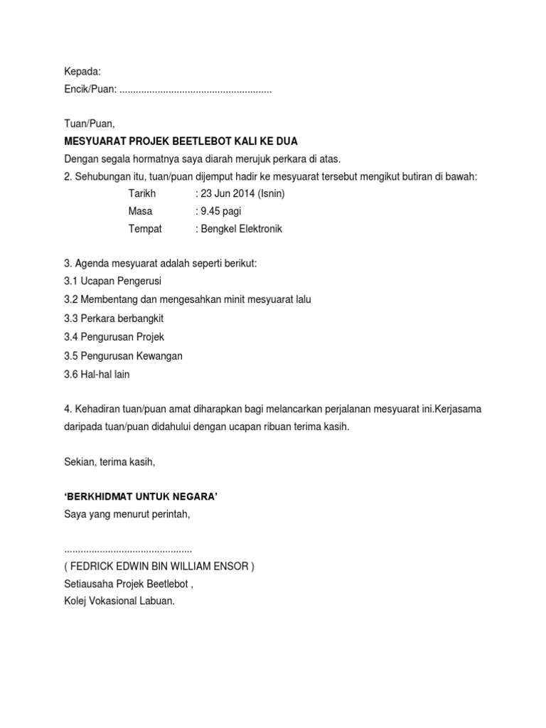Contoh Surat Panggilan Dan Minit Mesyuarat Pdf